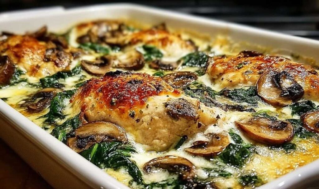 Low Carb Hähnchen Spinat Pilz Auflauf