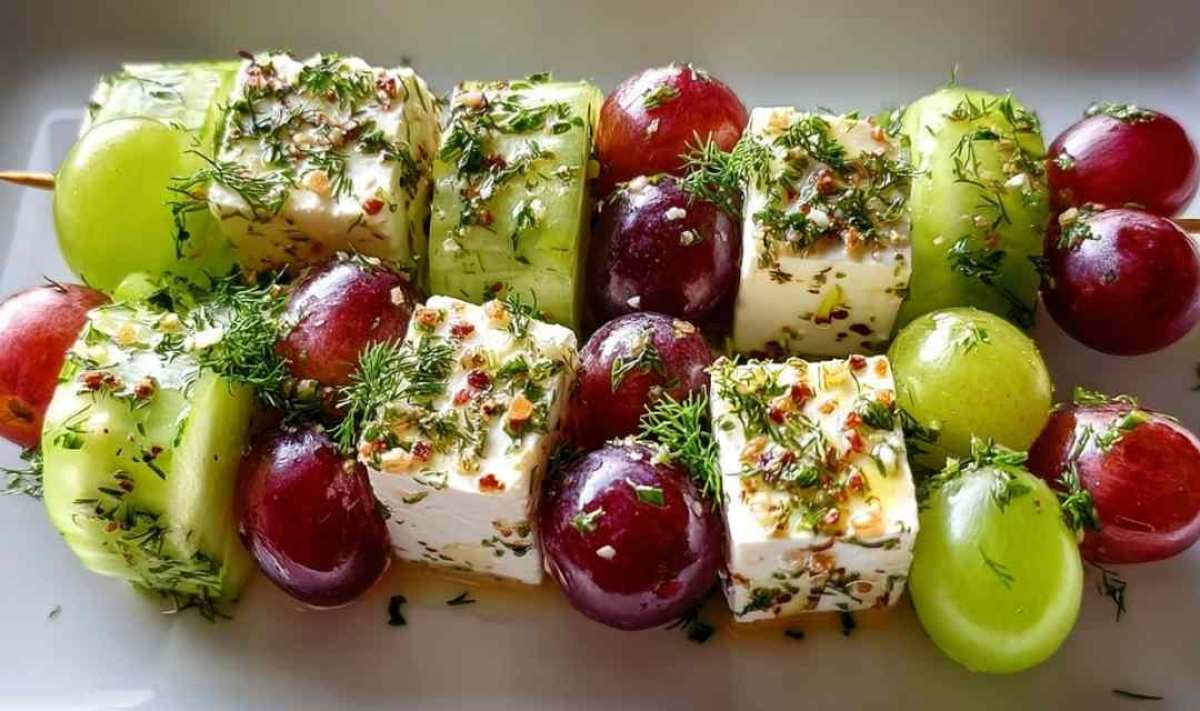 Wenn der Sommer in voller Pracht steht, sind sommerliche Snack-Spieße mit Trauben, Feta und Gurke genau das Richtige für mich. Diese erfrischende Kombination bringt Farbe und Leichtigkeit auf jeden Tisch und ist in nur 15 Minuten fertig.